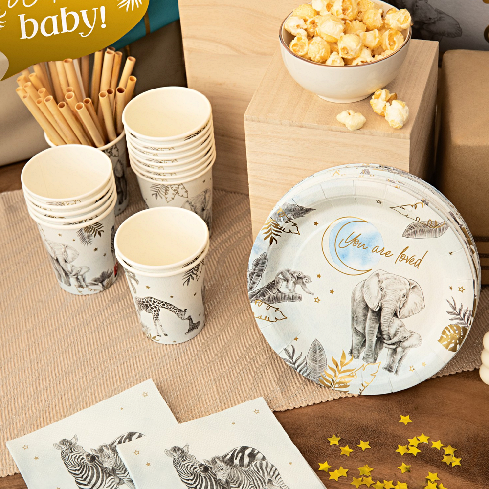 Maak je safari-thema compleet met deze leuke bekers! Perfect voor een geboorte of babyshower, deze bekers zijn een vrolijke aanvulling op je feestdecoratie. Ze zijn verkrijgbaar in de kleuren roze, blauw en nude.
