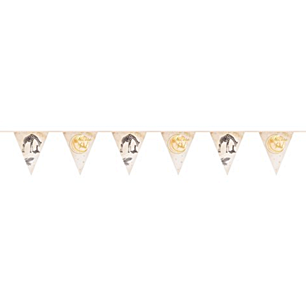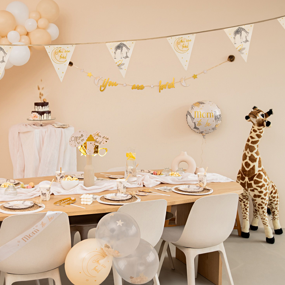 Breng een feestelijke sfeer naar je babyshower of geboorte met deze vlaggenlijn in safari-thema. Met een lengte van 6 meter is het een perfecte decoratie om je ruimte op te fleuren. De vlaggenlijn is gemaakt van papier en is verkrijgbaar in verschillende kleuren, waaronder Roze, blauw en nude, zodat je kunt kiezen wat het beste bij je feest past.