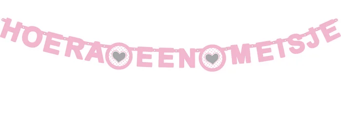 Breng extra sfeer in huis met deze feestelijke Wensletterlijn "Hoera een Meisje"! De vlaggenlijn is uitgevoerd in roze en witte tinten en is versierd met harten, wat het de perfecte decoratie maakt voor een babyshower, geboortefeestje of andere viering. De tekst "HOERA EEN MEISJE" zorgt voor een vrolijke en feestelijke uitstraling.
